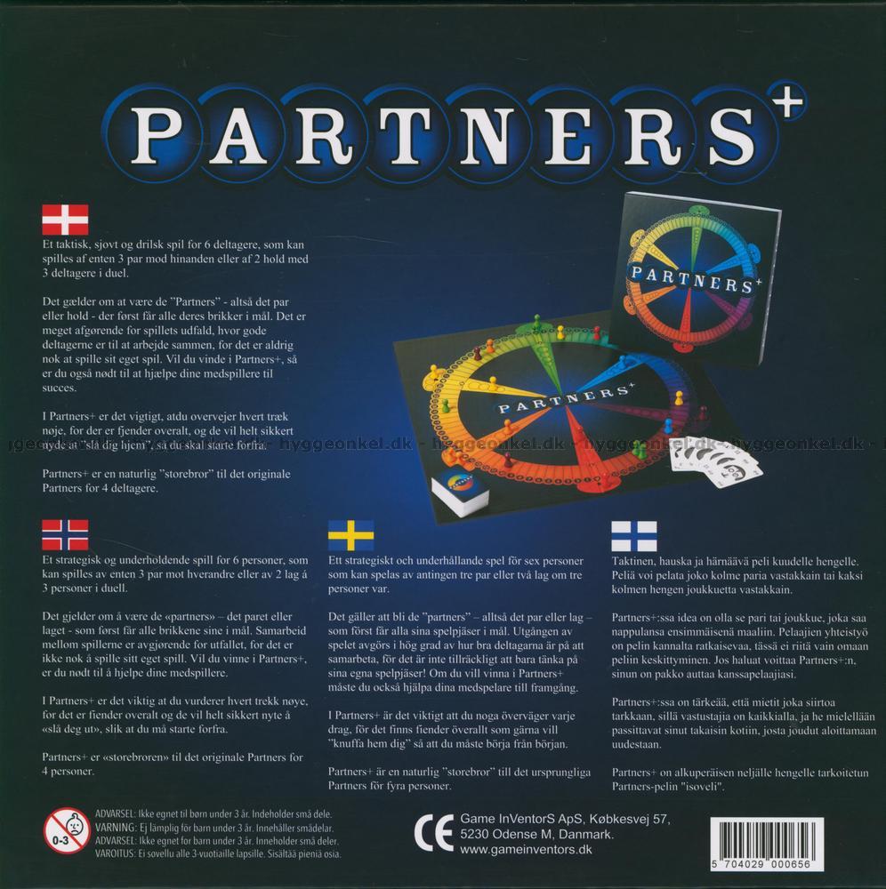 Denna utgåva av Partners är, kort förklarat, ett mycket roligt brädspel för sex spelare. Utgåvan är också känd som Partners Plus.