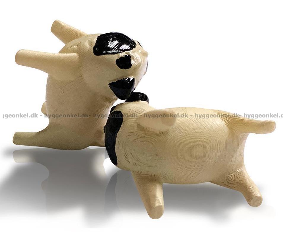 I denna version är grisarna ersatta med hundar, närmare bestämt mopsar (pugs).