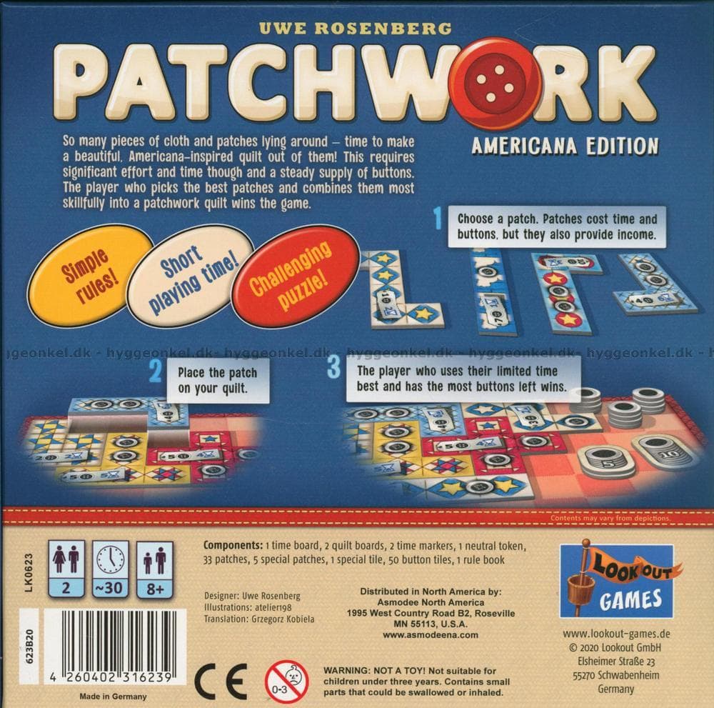 I denna utgåva är brickorna/lapparna inspirerade av den amerikanska patchwork-kulturen.