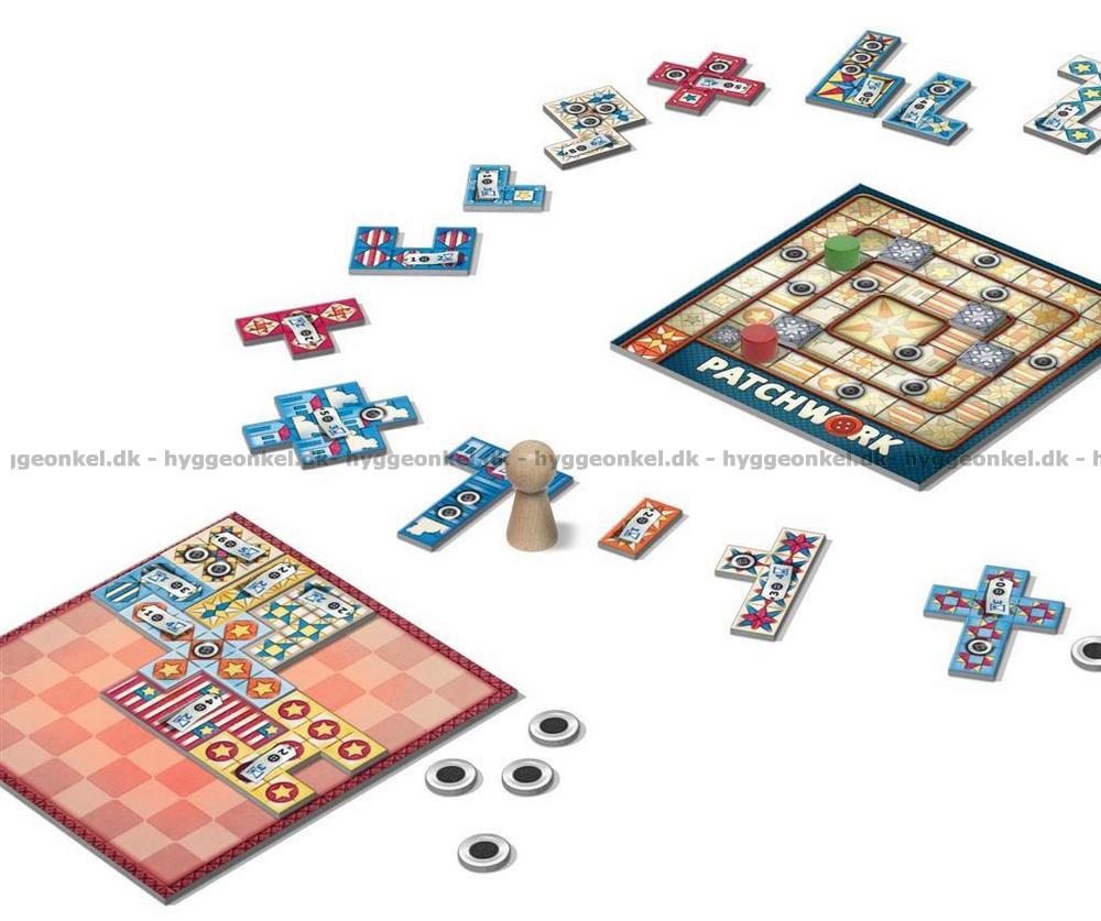 I Patchwork tävlar två spelare om vem som kan sätta ihop det vackraste lapptäcket.