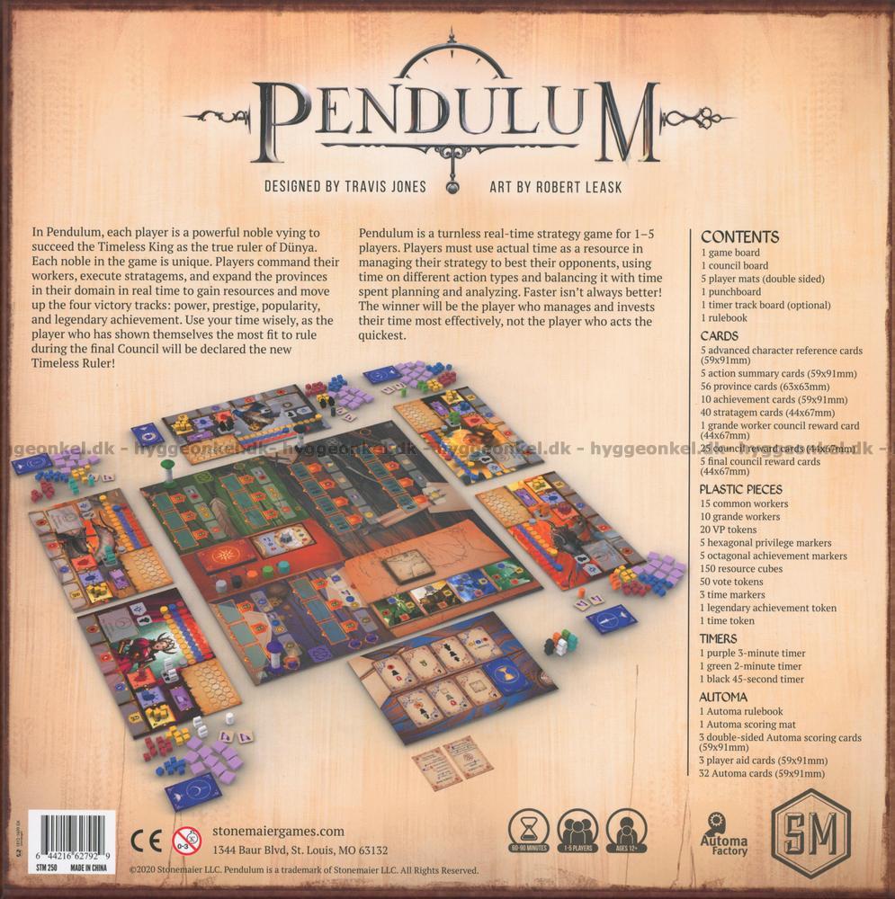 I Pendulum får spelarna rollen som adelspersoner och ska tävla om vem som blir nästa härskare över Dünya. Varje adelsperson har unika egenskaper.