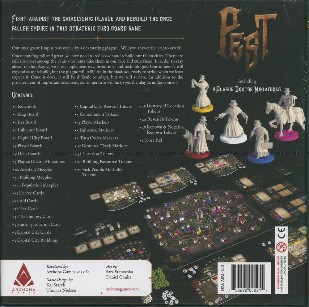 "Pest" är ett strategiskt brädspel där du tar rollen som en av de få överlevande ledarna i ett land plågat av en dödlig pest. Ditt uppdrag är att rädda ditt folk och återuppbygga din civilisation samtidigt som du bekämpar sjukdomens spridning.