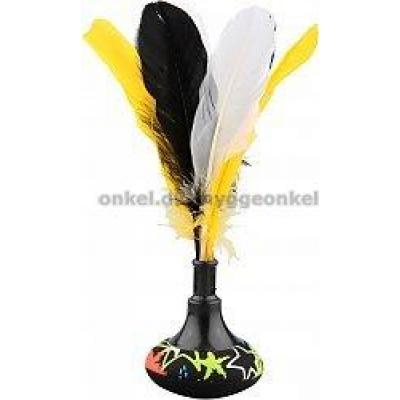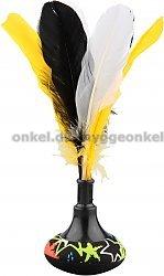 Här får du 1 peteca, som består av en boll på vilken det sitter en bukett med fjädrar. Den väger cirka 30 gram.