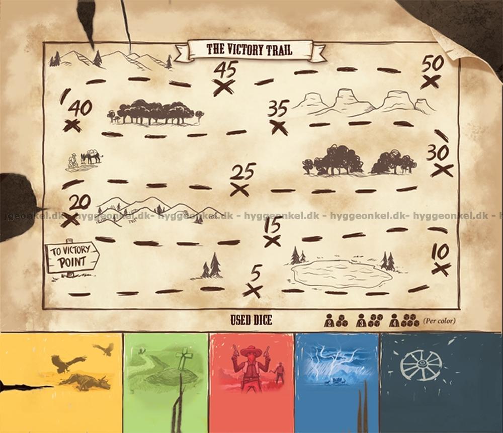 Sadla upp och för din karavan säkert framåt på den riskfyllda sträckan Oregon Trail! Samla ett gäng av tuffa medlemmar och samla resurser och utrustning med ett unikt dice drafting-system. Men, faror väntar i form av de tärningar du inte väljer. Du kan anställa bybor, köpa vagnar, leta efter guld och föra boskap - allt medan du förbereder dig på oundvikliga överfall, stormar och hungersnöd. Vem kan bäst hantera vildmarkens faror och föra sin karavan till seger?