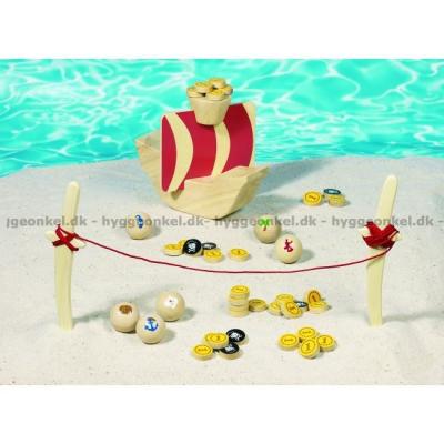 Guldmynten ska placeras på skeppets mast. Sedan gäller det att träffa mynten så de ramlar ner.