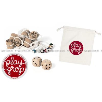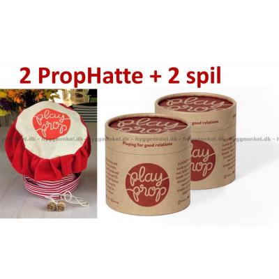 3 kompletta PlayProp-spel (för 3 x 8 personer), manual/guide, poängtavla med 3 x 25 sidor, 3 extra pjäser, 7 extra proppar med snöre och 3 propphattar.