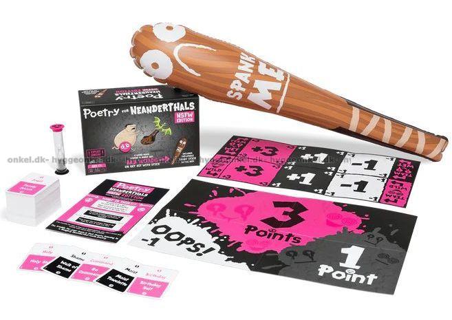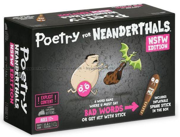 Poetry for Neanderthals: NSFW är ett fräckt, tokigt och mycket underhållande partyspel där deltagarna turas om att bli poet och ska få sitt lag att gissa ord eller fraser – men poeten får bara använda enstaviga ord.