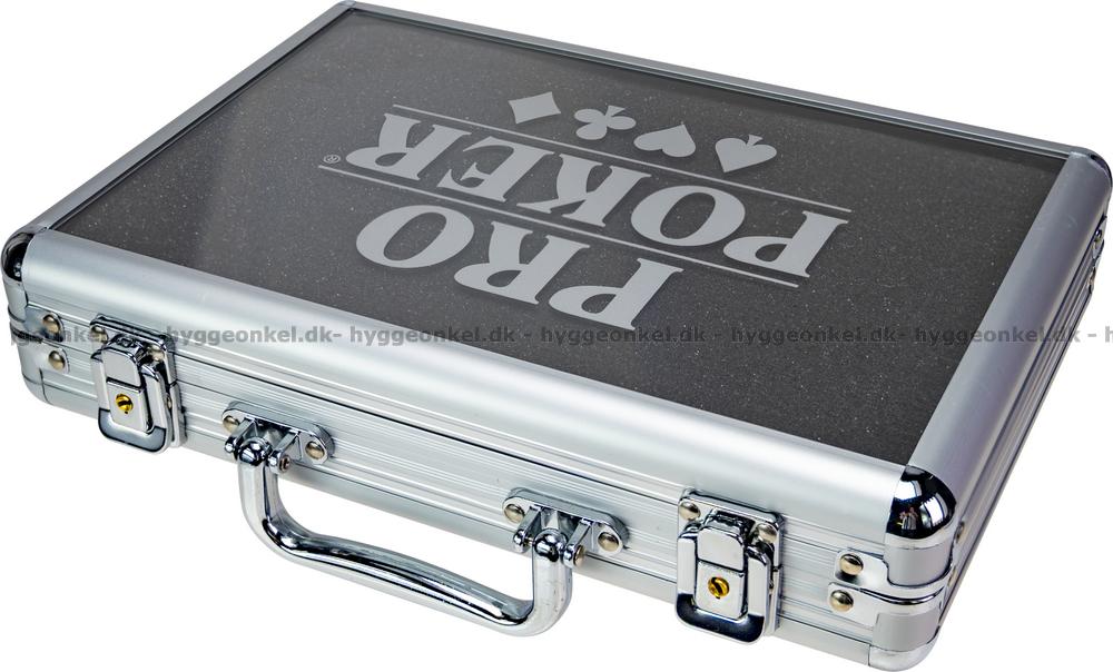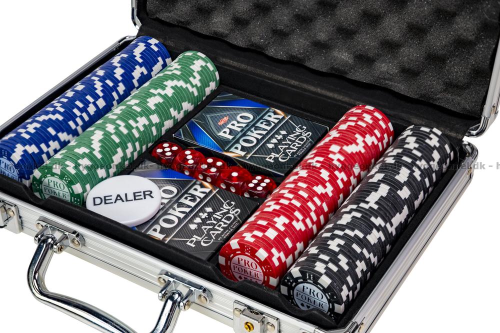 Här är en läcker aluminiumväska med 200 marker (fördelade på 4 olika färger), kortlekar, tärningar och dealerknapp. Helt enkelt allt som är viktigt i livet, om du är pokerspelare alltså!
