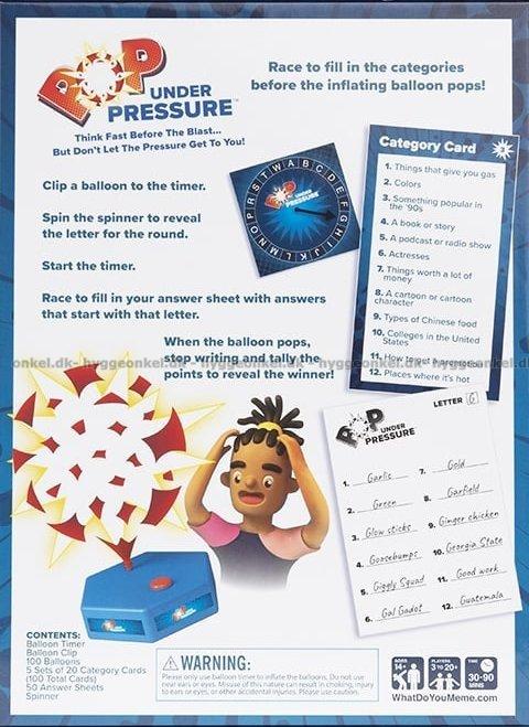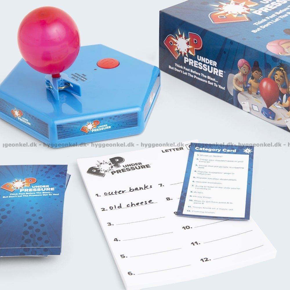 Pop Under Pressure är ett underhållande spel i vilket man ska ge svar på så många av 12 kategorier som möjligt.