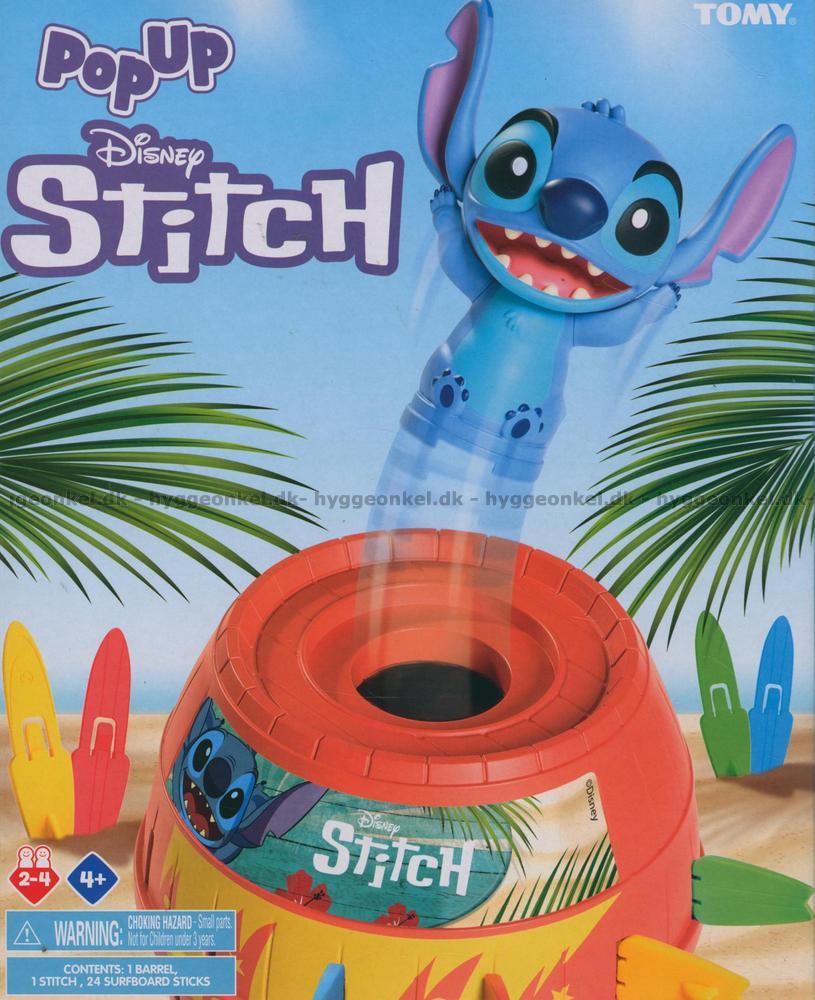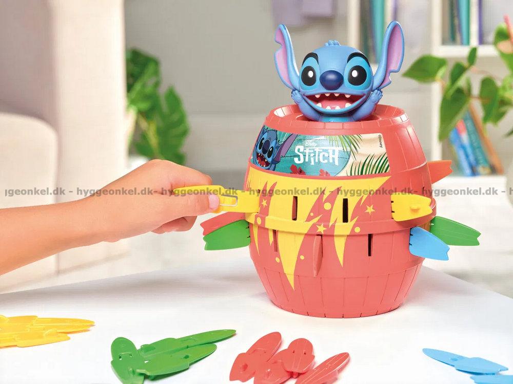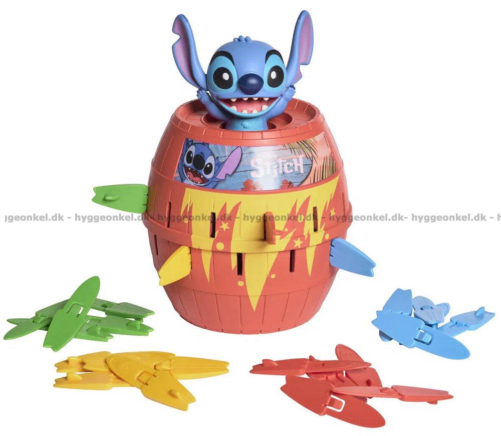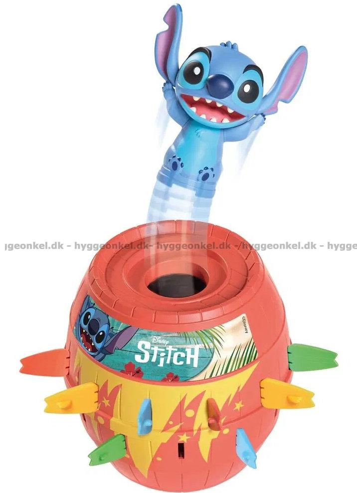 Stoppa ned Stitch i tunnan och sätt knivarna i hålen på tunnan. Vem blir först med att få Stitch att hoppa upp?