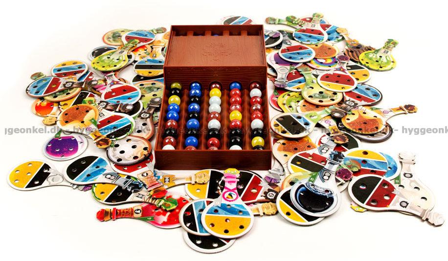 Kära studenter! Nu är det dags för examen i trolldrycksblandande! Reglerna är alltid de samma: ta en ingrediens från ingrediensbehållaren och se de andra misslyckas. Om du blandar ingredienser i samma färg exploderar de och du får dem.