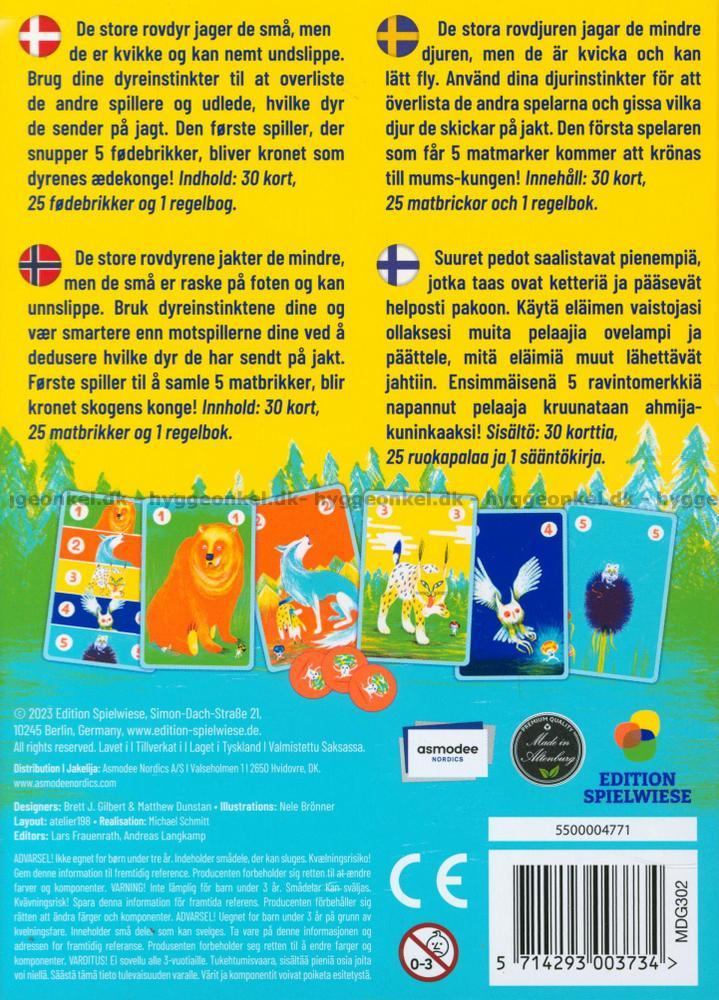 Varje spelare får djurkort bestående av en björn, en varg, ett lodjur, en uggla och en mus. I varje runda väljer spelarna ett djurkort i hemlighet och avslöjar det sedan för att se vem som jagar vem. Djuren jagar nämligen i en bestämd ordning.