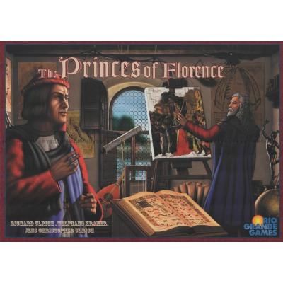 Princes of Florence är ett strategispel för 3-5 spelare. I kartongen hittar du spelbräden, pjäser, marker och kort.