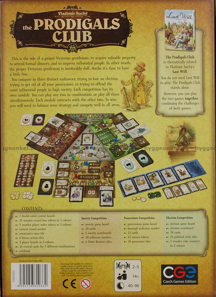 Tematiskt påminner The Prodigals Club om designerns andra spel: "Last Will". Du behöver inte ha Last Will sedan tidigare för att spela The Prodigals Club, men om du äger båda kan de kombineras.