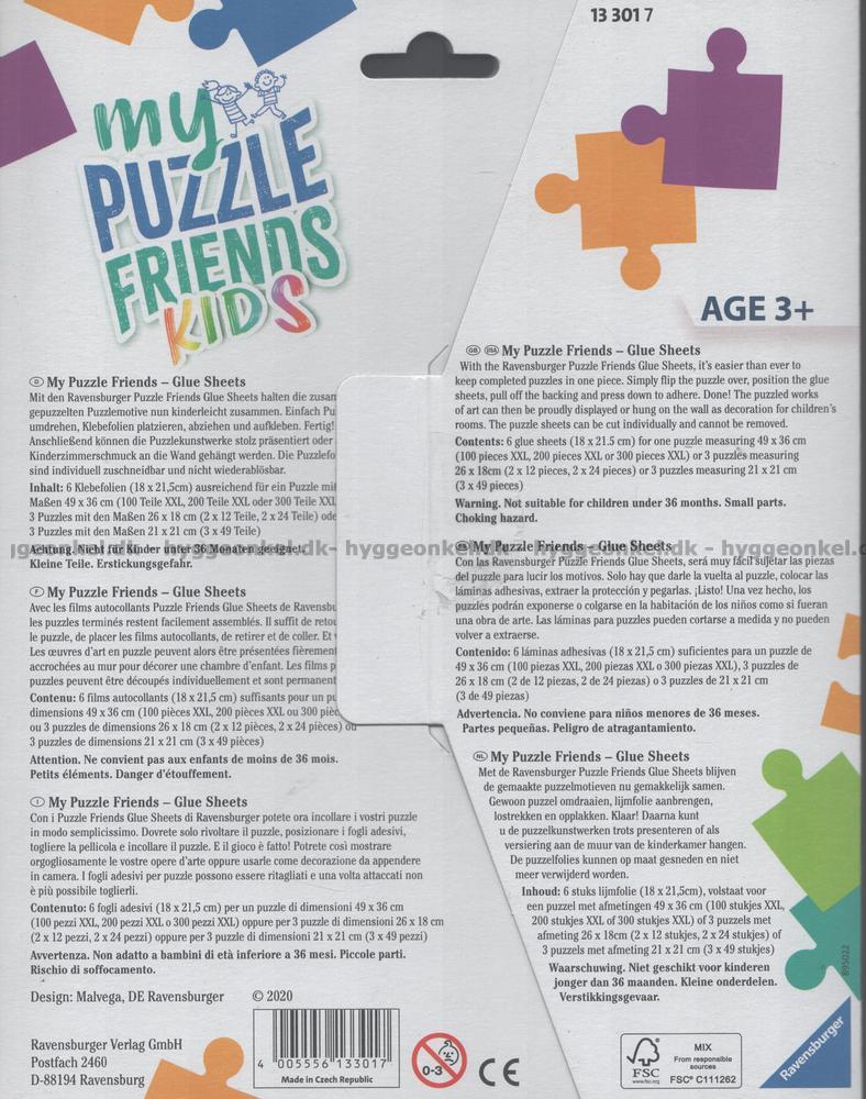 Denna typ av pussellim består av en rad ark med klister på den ena sidan (ungefär som tejp). Du vänder barn pusslet med baksidan upp och klistrar försiktigt på arken så att hela ytan är täckt. Det gör inget om arken skulle överlappa varandra.