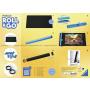 Ett underlag, ett plaströr samt två kraftiga resårband är vad kartongen innehåller.