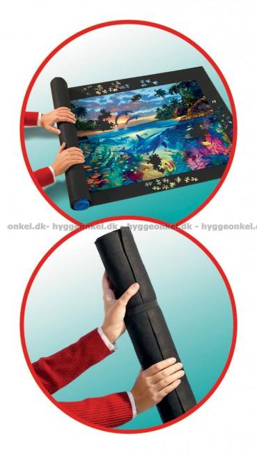 Med denna pusselmatta från Ravensburger lägger du ditt pussel som du brukar, men när du ska använda bordet till något annat (ibland blir det ju så!), så rullar du bara ihop pusslet och lägger bort det.