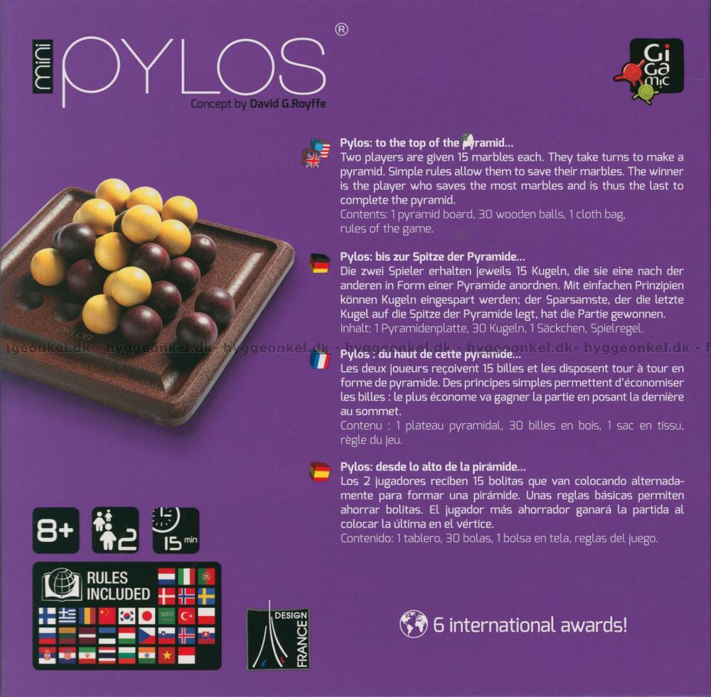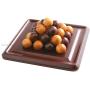 I asken hittar du ett spelbräde i trä som mäter 17 x 17 x 1 cm och 1 påse med 30 träkulor.