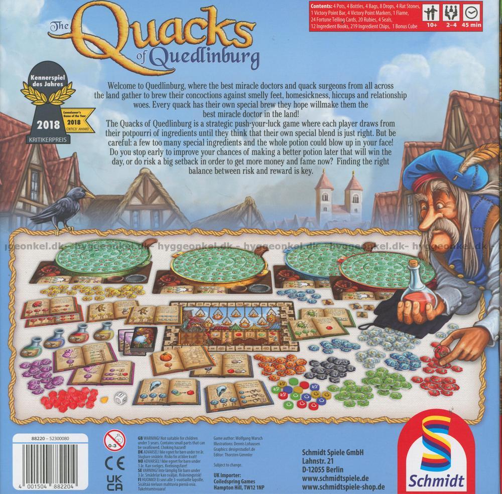 I Quacks of Quedlinburg är spelarna kvacksalvare och svindlare, som brygger egna hemliga elixir med ingredienser hämtade från en gemensam påse.