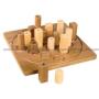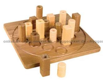 Kartongen innehåller ett spelbräde (33 x 33 cm.), 16 bitar samt ett häfte med engelska spelregler.