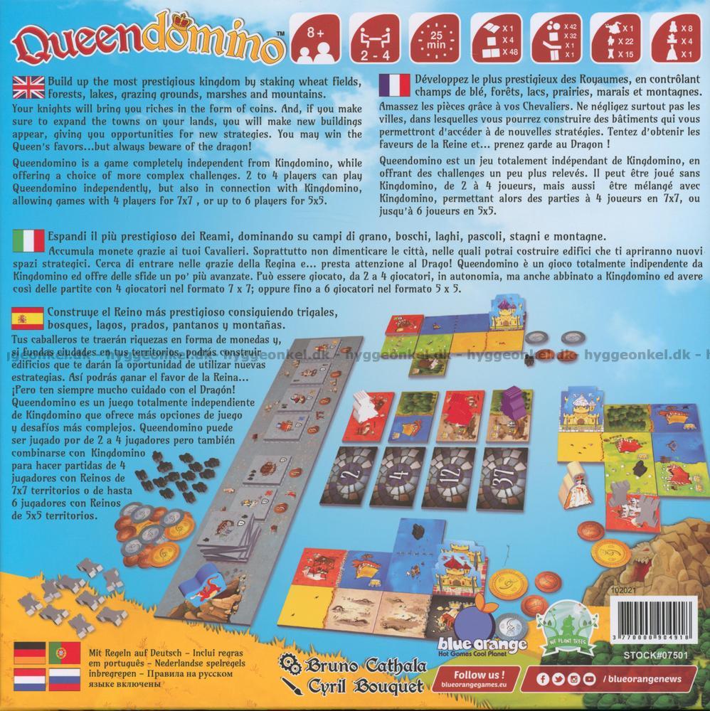 Queendomino är uppföljaren till Kingdomino. Det kan antingen spelas fristående eller kombineras med Kingdomino.