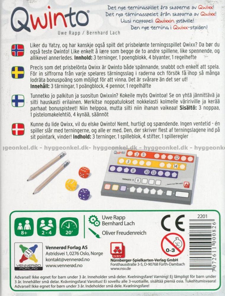 Qwinto är ett litet trevligt tärningsspel för hela familjen.