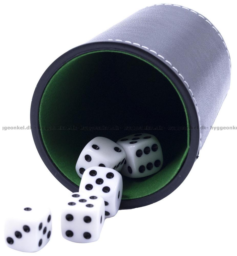 Tärningsbägare i konstläder: Svart - med vita tärningar