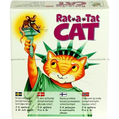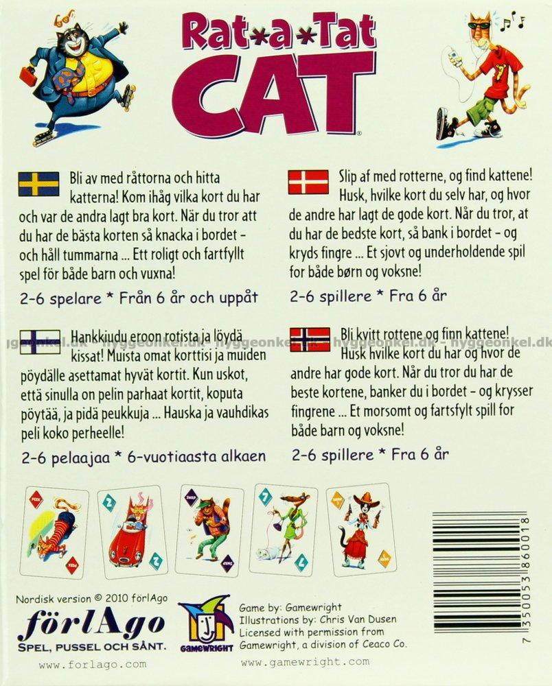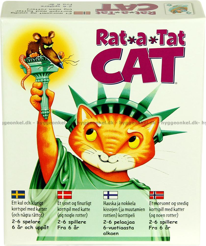 Rat-a-Tat Cat är ett roligt kortspel i vilket du ska komma ihåg vilka kort du själv sitter med och var de andra spelarna lägger sina kort.