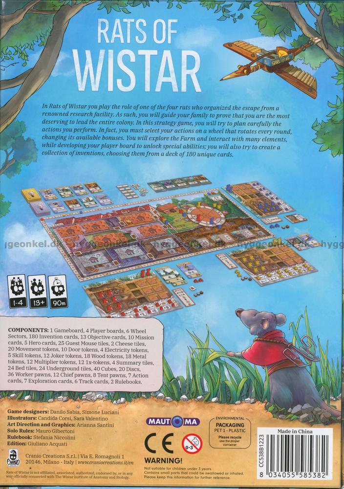 "Rats of Wistar" är ett strategiskt brädspel där du och dina medspelare tar på er rollerna som kloka råttor som har rymt från Wistar-institutet. I spelet styr varje spelare en familj råttor som ska bevisa sitt värde för att leda en hel koloni.