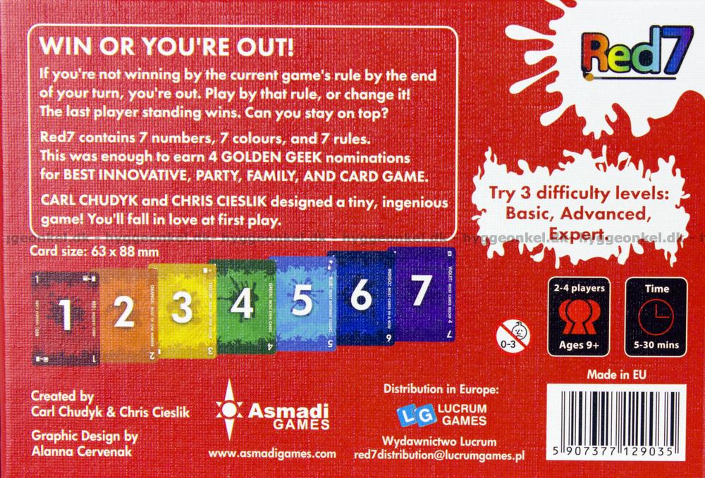 Red 7 består av 49 kort fördelade på 7 olika färger. Att spela en hand tar endast ett par minuter.