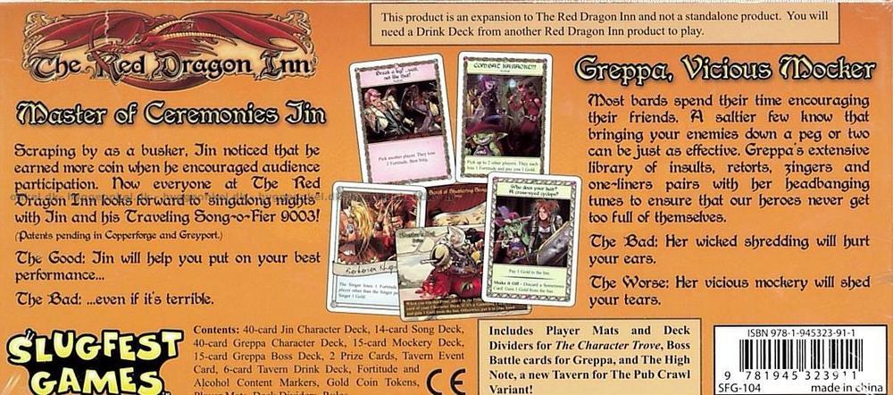 Välkommen till krogens bullriga och kaotiska stämning, där hjältar kopplar av efter äventyr med drycker, sånger och vassa kommentarer. I denna expansion till Red Dragon Inn möts den karismatiske barden Jin och den bitska goblinen Greppa i en underhållande duell fylld med sång, hån och oväntade vändningar. Jin styr krogens stämning med sina medryckande sånger och tvingar de andra gästerna att sjunga med, medan Greppa använder sin vassa tunga och skoningslösa spott för att få motståndarna ur balans.