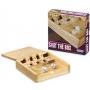 Spelet är i trä. Själva asken mäter 12 x 12 x 3 cm.