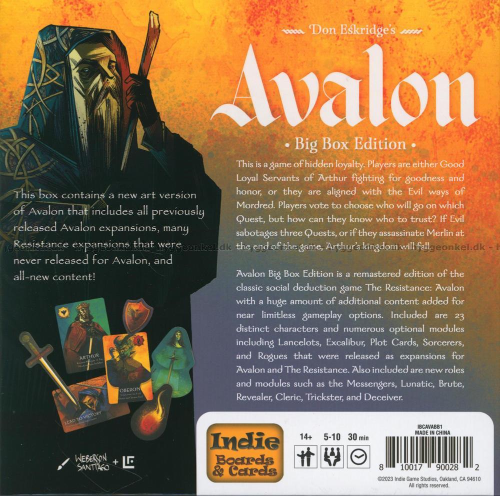 Avalon Big Box-utgåvan består av originalspelet The Resistance: Avalon och innehåller dessutom element från alla expansioner. Dessutom ingår en rad helt nya karaktärer och moduler. Detta är ett fristående spel i serien.