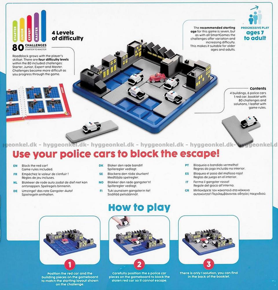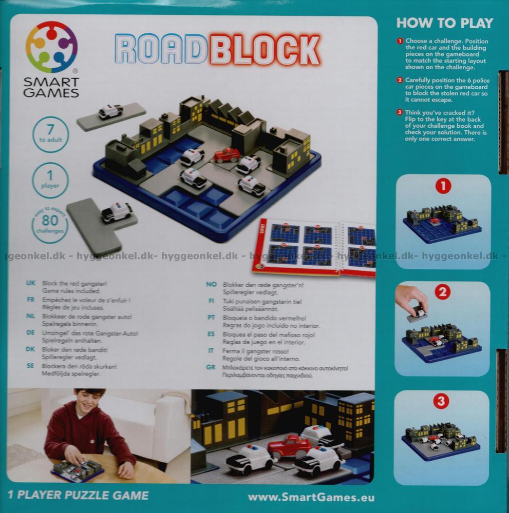 Ett häfte med utmaningar medföljer. Här hittar du 80 utmaningar i 4 svårighetsgrader. Road Block är alltså lämpligt för både nybörjare och mer erfarna spelare.