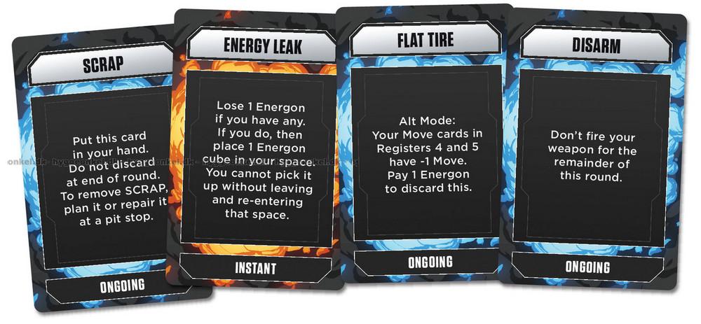 I kartongen finner du 6 stycken robotar, en mängd kort av olika slag, checkpoints, markörer, en timer och mycket mer. Spelreglerna är tyvärr bara på engelska.
