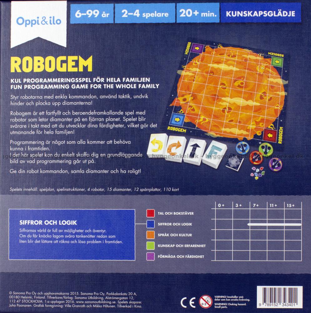 Robogem är ett spännande strategispel där robotar letar efter diamanter på en främmande planet. Spelarna styr sin robot med kommandon och lär sig samtidigt grunderna för programmering.