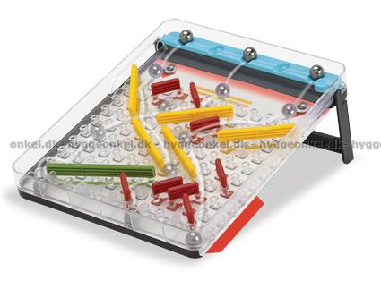Spelområde (mäter cirka 18 x 22 cm), 40 utmaningar (och lösningar), kulor och hinder.