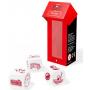 I denna lilla ask hittar du 3 tärningar med motiv med sport och friluftsliv som tema.