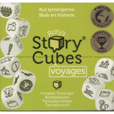 I denna version av Rory's Story Cubes är det resor som är i fokus. Bege dig iväg på en fantastisk resa - tärningarna visar vart!