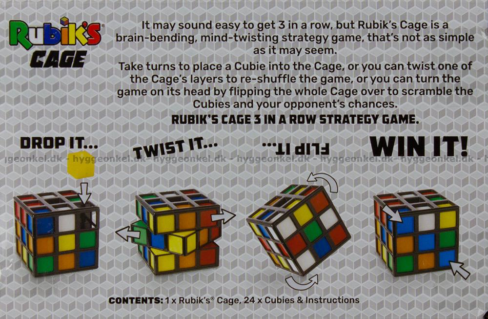 I Rubiks Cage gäller det att bli först med att få 3 i rad i en av dina färger - vågrätt, lodrätt eller diagonalt.