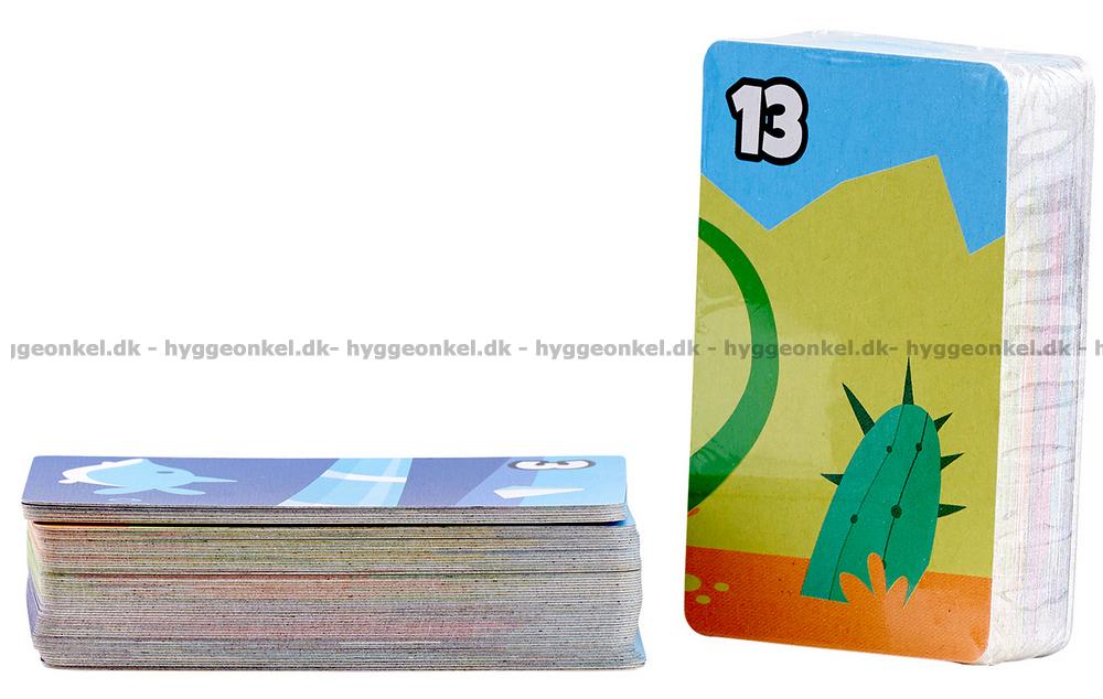 Asken innehåller 112 kort (korten mäter 6,7 x 4,3 cm).