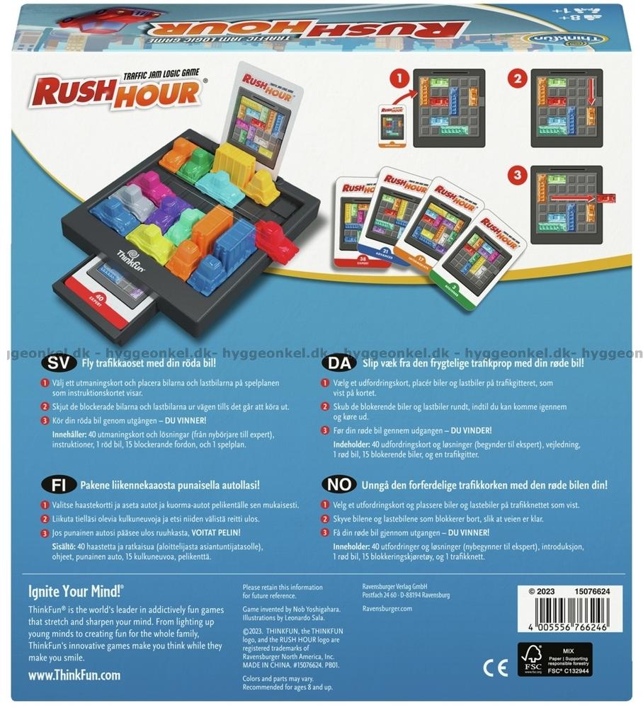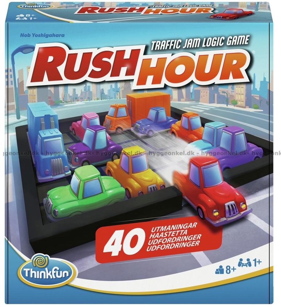 Du kan spela Rush Hour hemma eller på resan. Det är enkelt att packa ihop spelet och det tar inte mycket plats.
