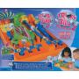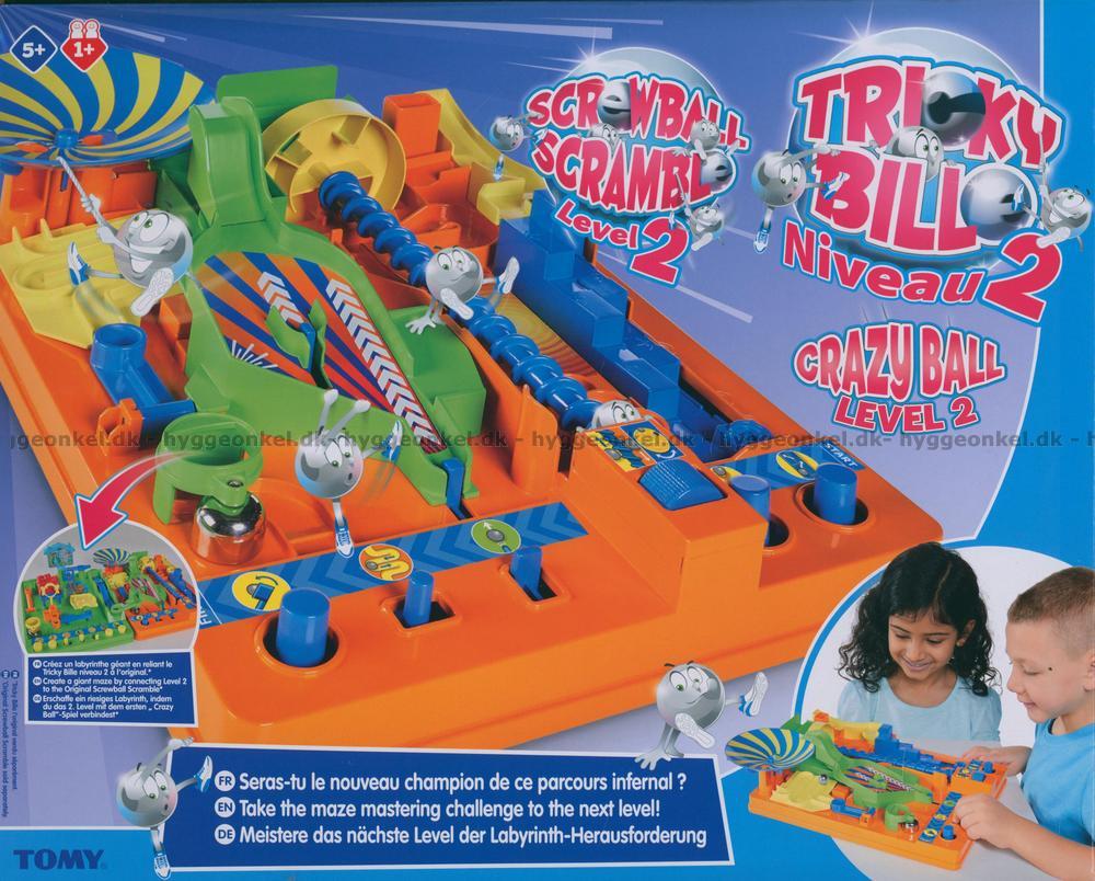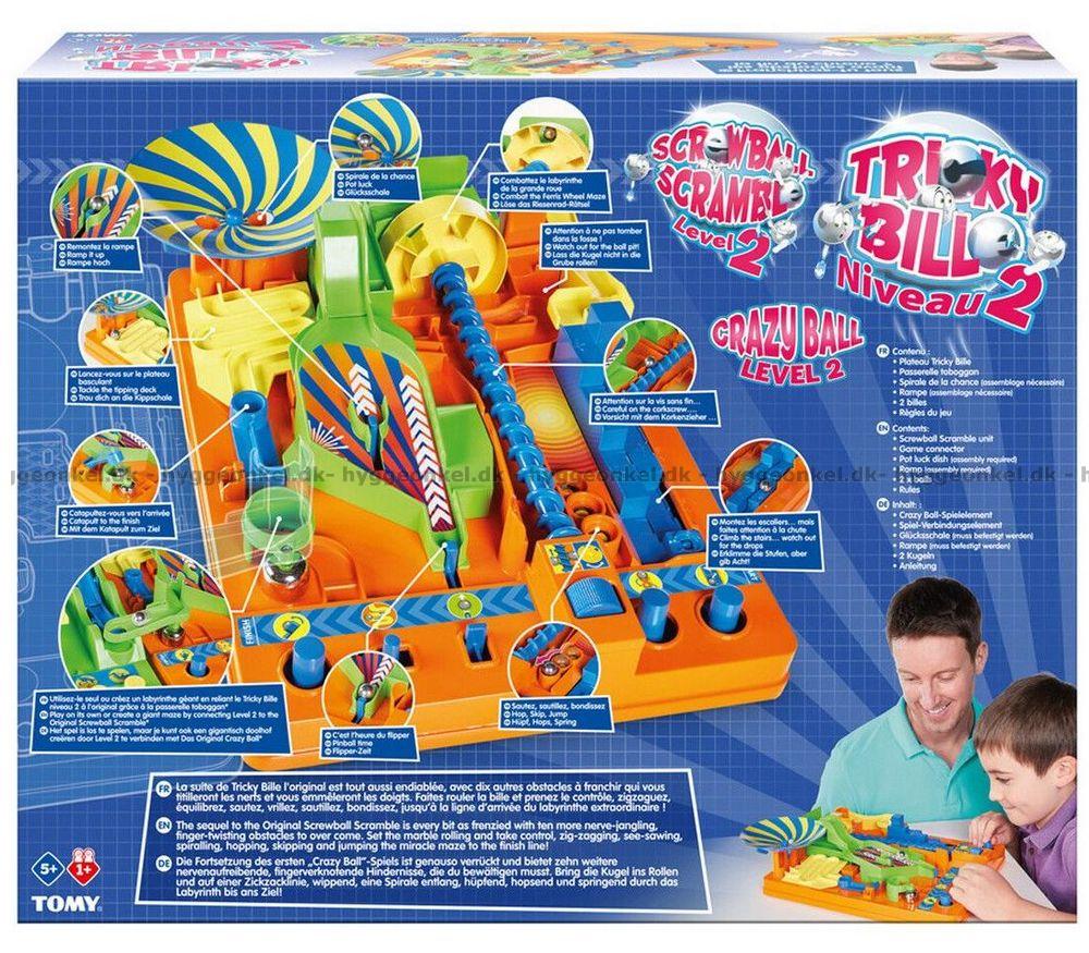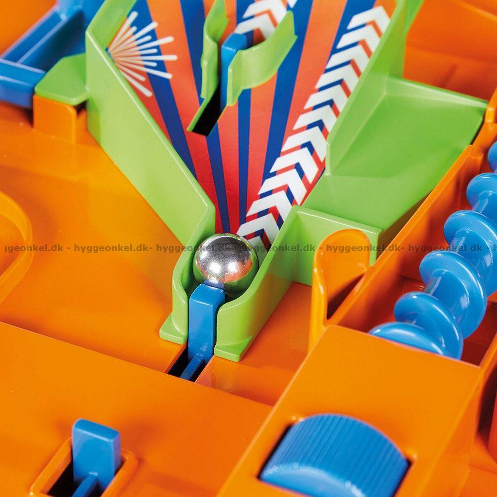 Lådan innehåller en galen hinderbana och engelska instruktioner.