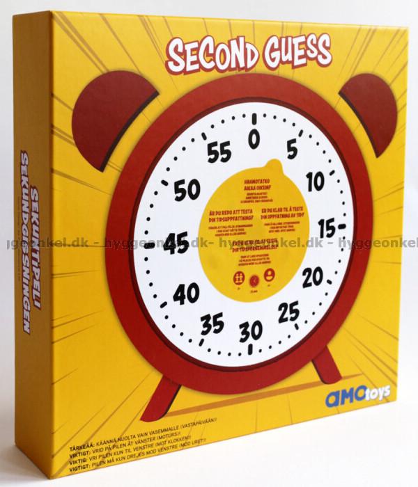 Second Guess är ett roligt och nervkittlande spel för hela familjen, där precision och tidsuppfattning står i fokus. Spelet går ut på att stoppa timern så nära ett visst antal sekunder som möjligt, vilket framgår av uppdragskorten.
