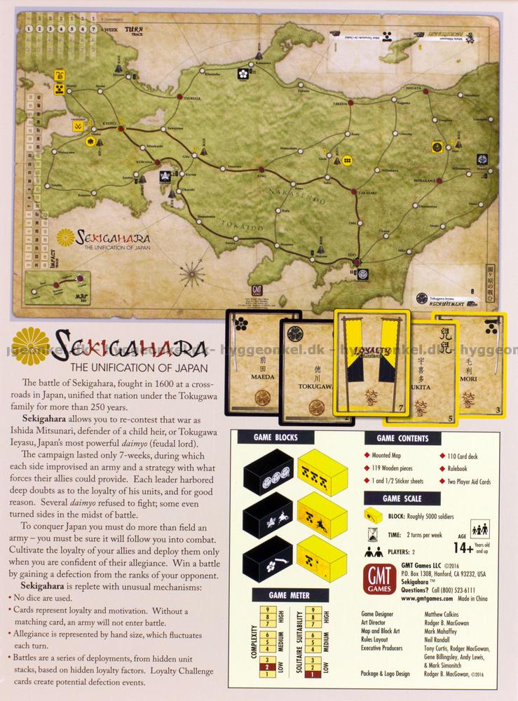 Sekigahara är ett krigsspel med ganska låg komplexitet. Det kretsar kring en händelse i Japan omkring år 1600 då Tokugawa inledde ett krig som skulle förena och hålla samman Japan i mer än 250 år.