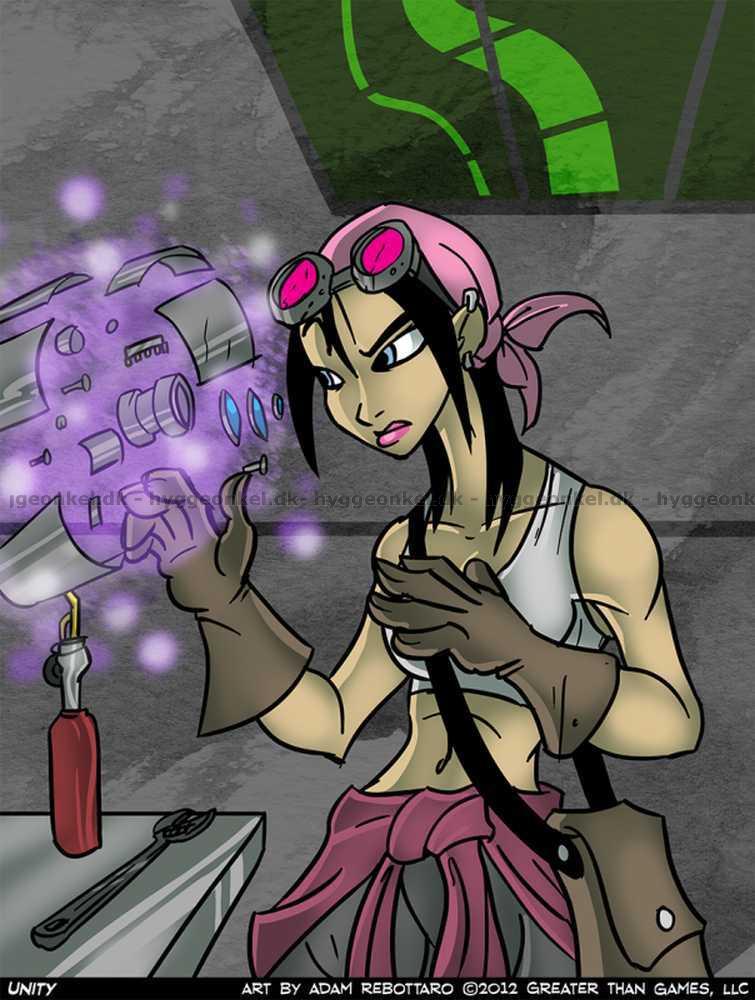 Unity är en techie, som kan kontrollera teknologi på en hög nivå och skapa mekaniska golems att göra grovarbetet för henne.