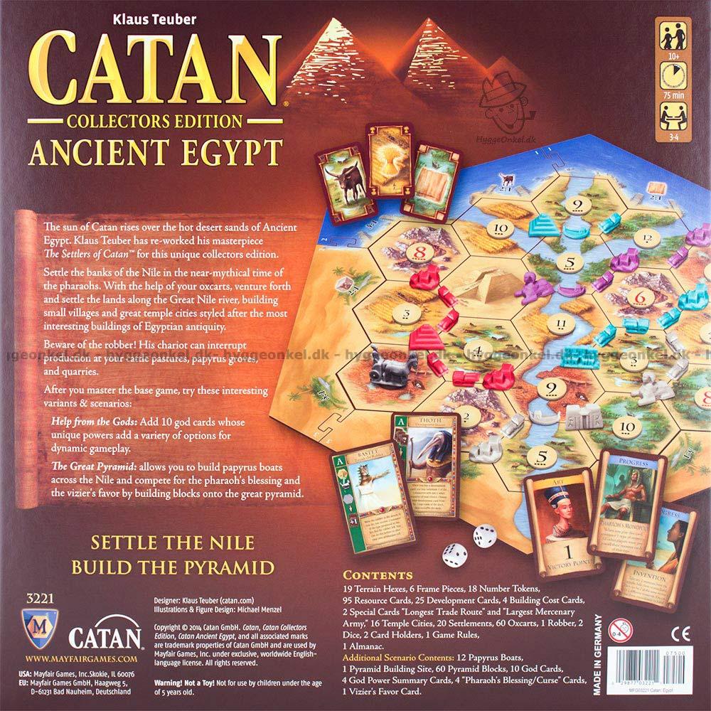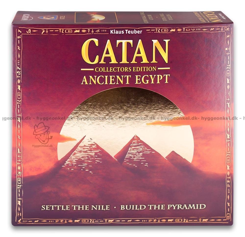 Catan: Ancient Egypt utspelar sig i Egypten. Spelarna ska nu använda oxdragna vagnar för att transportera material så de kan bygga både små byar och stora tempel till faraonernas och gudarnas ära.