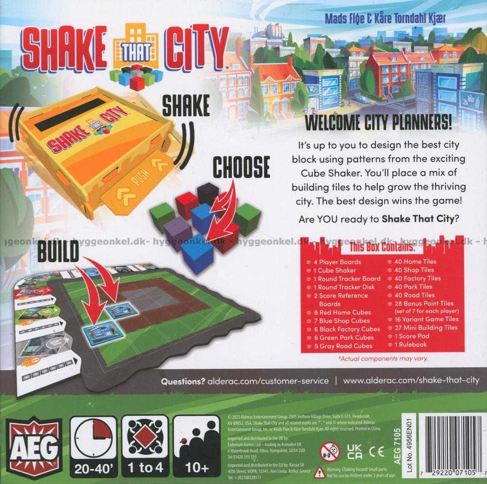 De ska designa sina egna städer med hjälp av de mönster som dyker upp från spelets spännande "cube shaker". Det är en liten gul låda som innehåller spelets olikfärgade kuber.