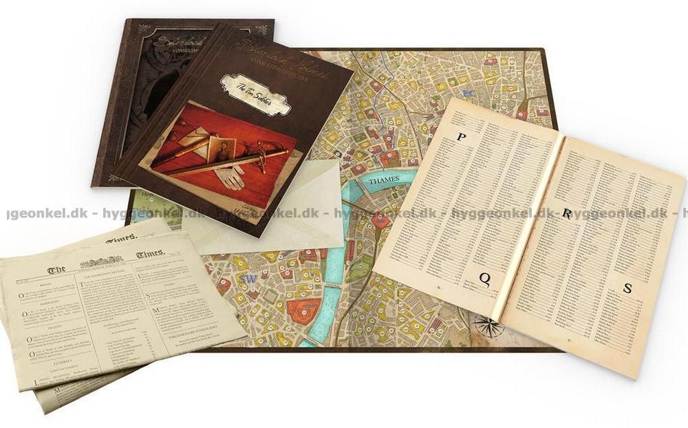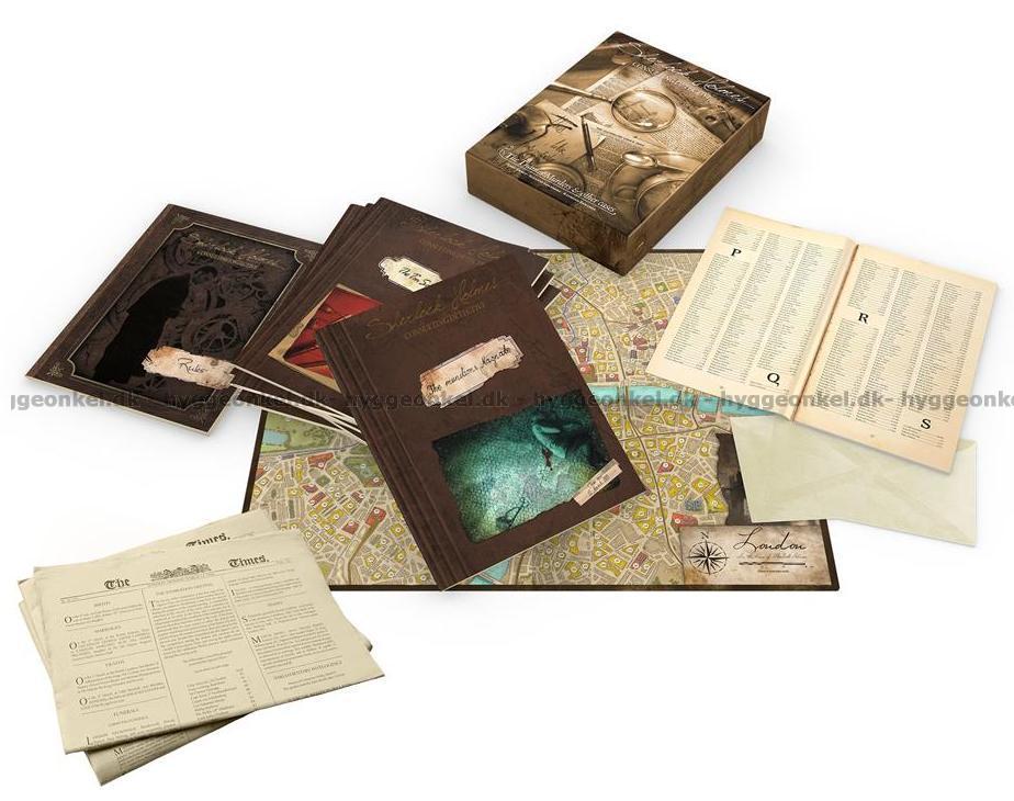 Kartongen inkluderar 10 tidningar, karta över London och 10 detektivhistorier.