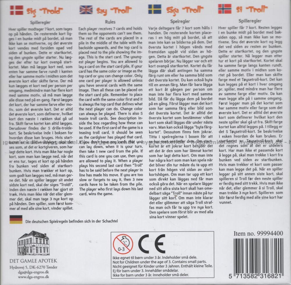 Säg Troll är ett trevligt spel som påminner om Uno. Vem blir först av med alla sina kort?